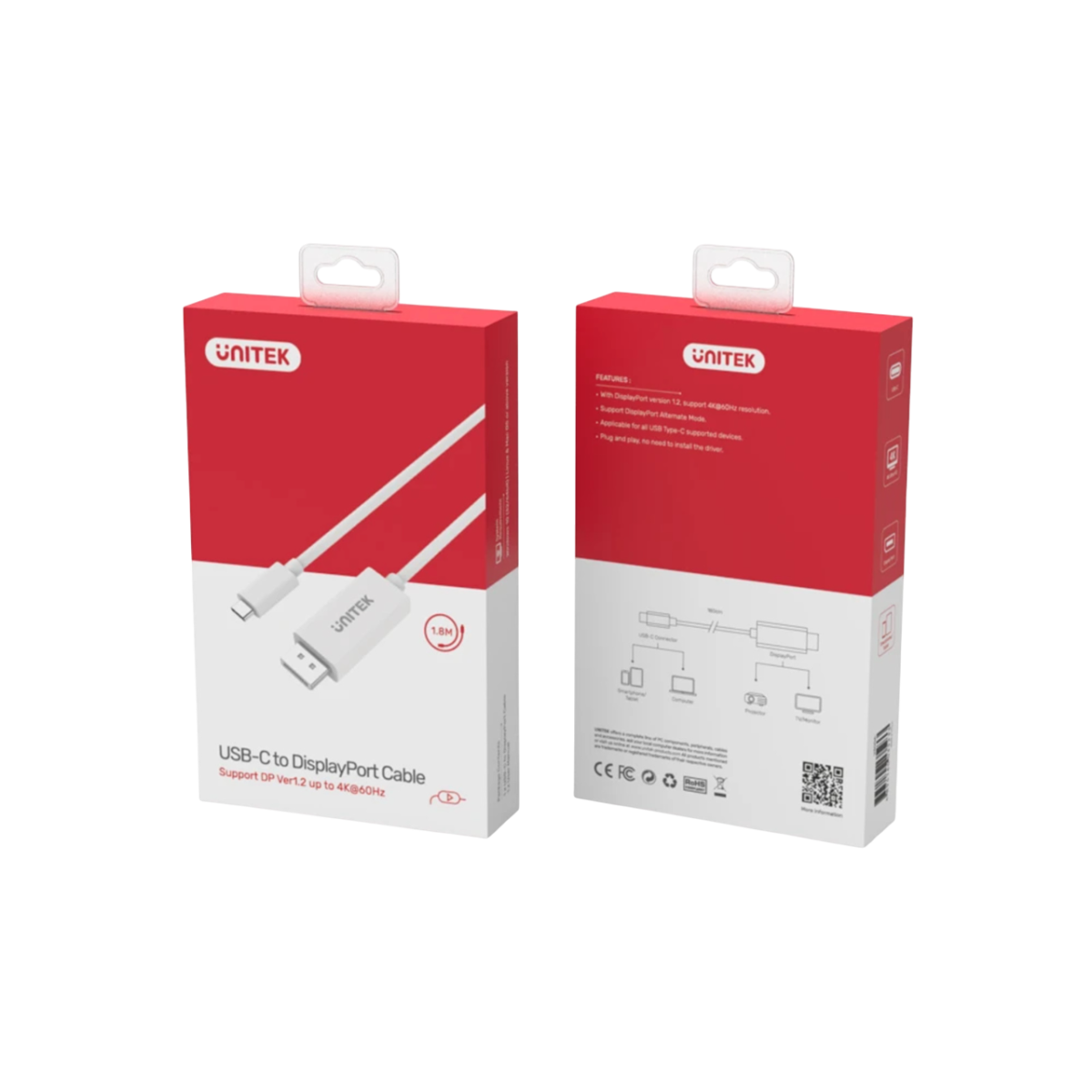 UNITEK USB-C TO DISPLAYPORT CABLE 1.8MTR